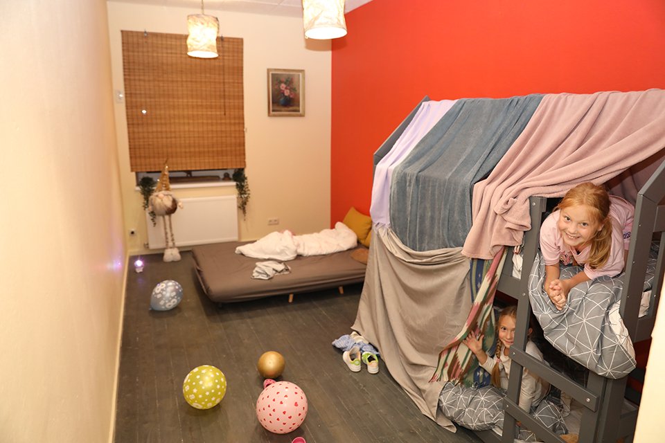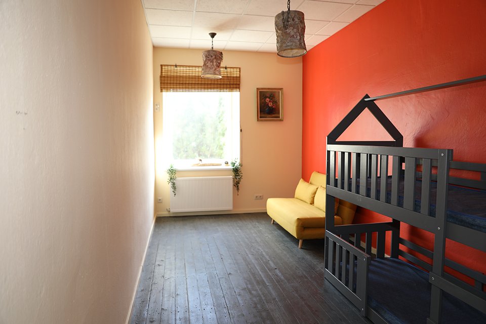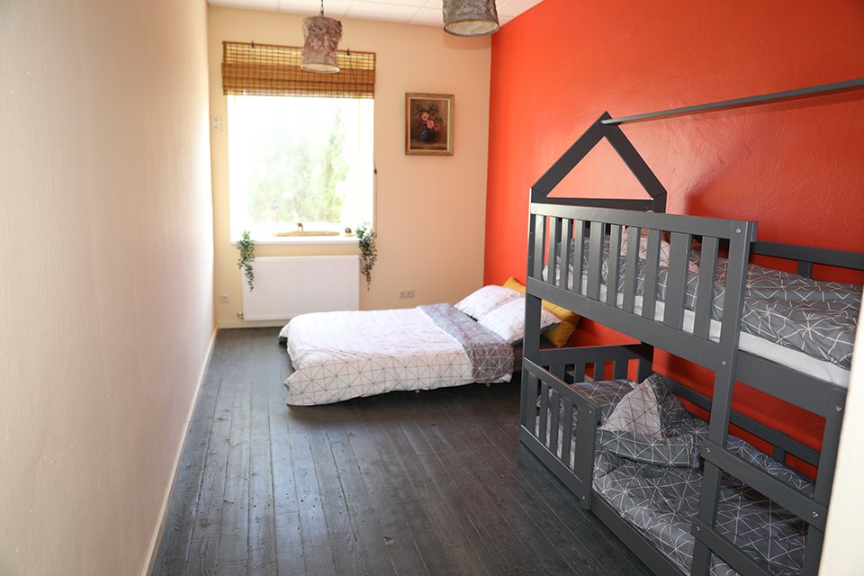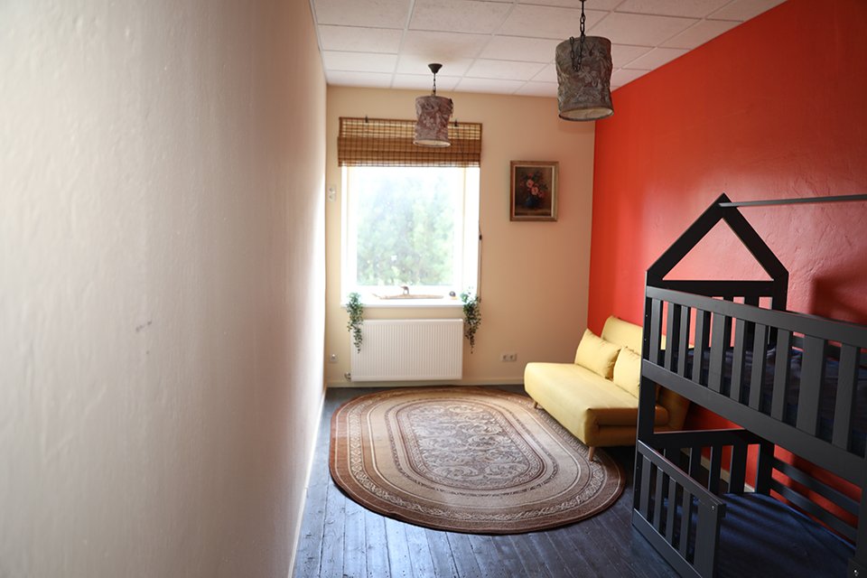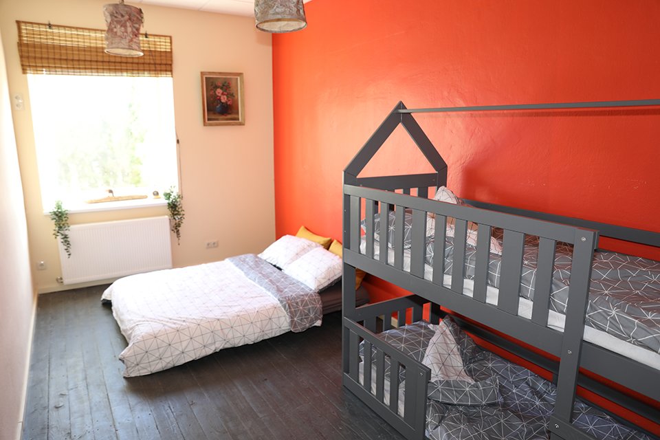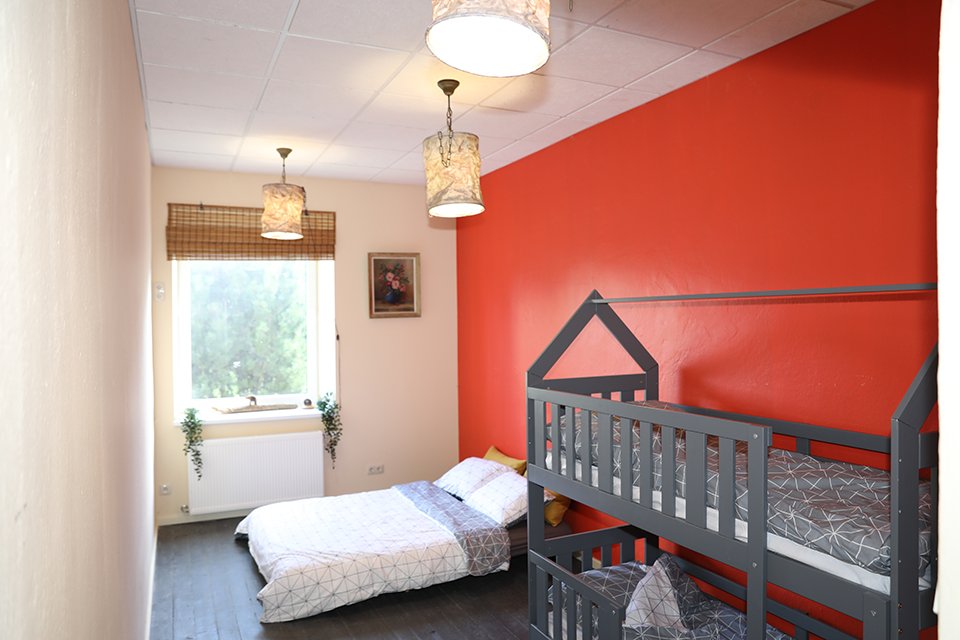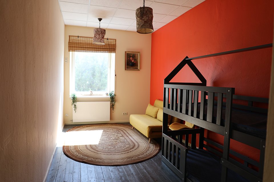 - Gultas veids: Divguļamā dīvāngulta un divstāvīga bērnu gulta 190cm garumā